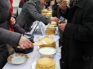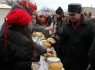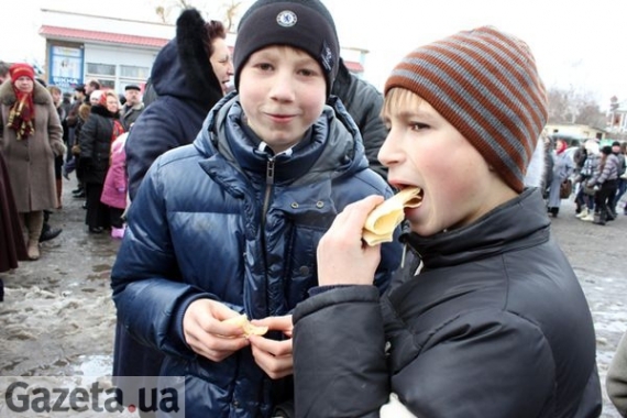 В городке Брацлив Винницкой области устроили проводы праздника Масленица бесплатной раздачей блинов. Для этого из 100 литров молока, 300 яиц и мешка муки приготовили тесто, которое жарили прямо на улице.