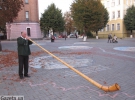 Сегодня в Виннице в парке Козицкого 71-летний Франц Сталдер из Швейцарии играл на этнической швейцарской трубе. Ее привез специально с собой, чтобы показать жителям. Труба называется духовный музыкальный инструмент Альпийский горн.