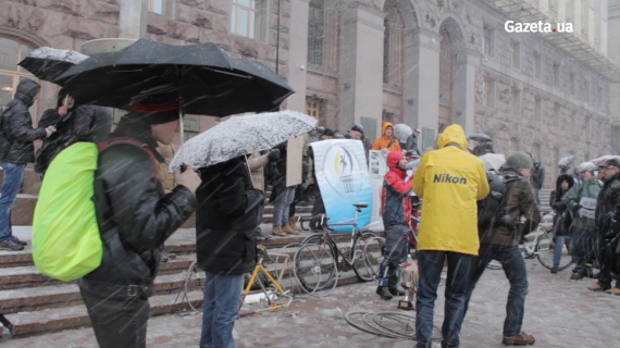 Общественные активисты из числа велосипедистов собрались под стенами Киевской городской государственной администрации. Участники акции обратились к городским властям с целью не допустить строительство автопаркинга на территории велотрека за счет бюджетных средств. На акцию пришли около 200 человек с лозунгами "Не дадим закатать велокультуру в асфальт!". Участники - представители общественной организации "Ассоциация велосипедистов Киева" и активисты инициативной группы "Киевский велотрек".