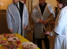 После осмотра производства хрена всех присутствующих пригласили отведать продукцию фабрики. Предложили бутерброды с ветчиной и колбасой. Рядом стояли баночки с горчицей и хреном. Первыми помазали бутерброды специями винницкий городской голова Владимир Гройсман и руководитель области Иван Мовчан. Заметили, что вкусно.