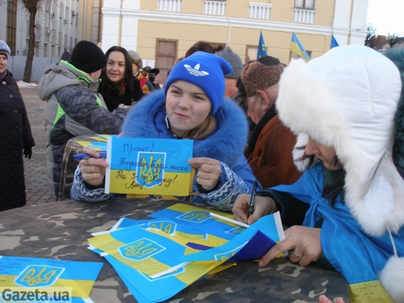 14 декабря в 15.00 в Виннице началась акция "Мечта для Украины", на которой все желающие могли написать пожелания Украине на 2014 год. Писали на национальных флажках, которых купили 1000 штук за 2000 грн.