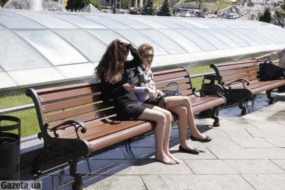 "Натаха, полезай в фонтан. Водичка - как парное молоко", - кричит из фонтана возле торгового центра "Глобус" блондинка в советской школьной форме.