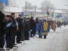 От памятника Степану Бандере вдоль маршрута живой цепи пронесли большой национальный флаг Украины.