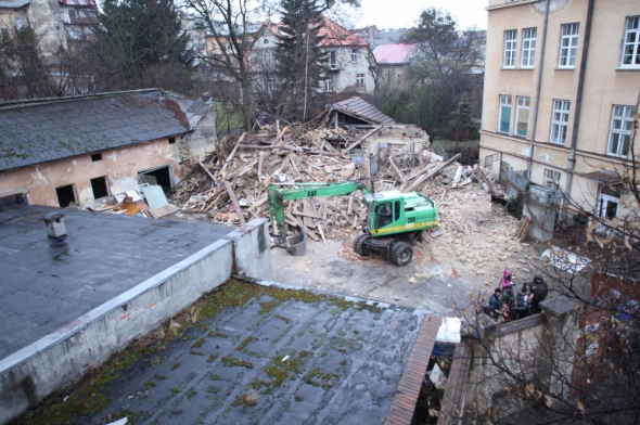 Во Львове сегодня утром здание памятника местного значения - лечебницу Андрея Шептицкого на ул. Озаркевича, 4 снесли застройщики. Местные жители говорят, что экскаватором разрушили здание и возвели металлический забор вокруг будущего строительства.