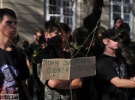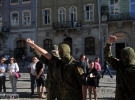 Сегодня во Львове прошла протестная акция "Держи штаны! Раздевают!". Ее организовали патриотические общественные организации города. Акция направлена ??на отзыв закона о запрете ношения камуфляжной одежды и использования национальной символики в форме. Проводили ее у стен городской ратуше вблизи фонтана Нептуна.