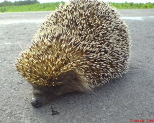 - В городе Перемышль на юго-востоке Польши под машину попала ежиха. Она пыталась перевести через дорогу своих ежат. Когда к семье ежей приблизился автомобиль, мать инстинктивно свернулась в клубок и не смогла перебежать дорогу. От столкновения с машиной она серьезно пострадала.