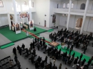 По завершении службы процессия идет к выходу. На крыльце Гузар жмурится от солнечного света. Он несколько лет почти не видит - различает только свет и темноту. Очки носит, потому что привык к ним с детства. Садится на переднее сиденье черного Фольксвагена. За рулем в рясе брат Андрей, личный секретарь и помощник владыки. Машина едет 50 метров до выставочного центра. Он похож на большой амбар, на 1 этаже проходят выставки рукоделия, овощей, ювелирных изделий. На 2 этаже накрыты несколько круглых столиков. Ребята в костюмах и белых рубашках пропускают приглашенных.