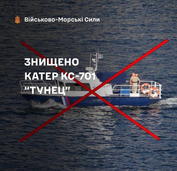 Потопили вражеский катер типа КС-701 "Тунец". Об этом сообщили Военно-морские силы Вооруженных сил Украины.
