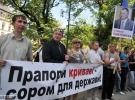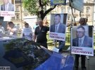 При рассмотрении апелляции под стенами суда собралось около 50 сторонников "Свободы". В руках держали партийные флаги, портреты Пидкуймухи и транспаранты "Свободу политзаключенным". Скандировали "За красную тряпку - снова сажают за решетку!", "Милиция и суды - предатели и палачи!".