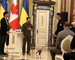 Президент Украины Владимир Зеленский на совместной пресс-конференции с премьер-министром Канады Джастином Трюдо наградил собачку-сапера Патрона.