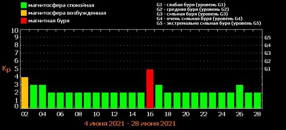 16 июня ожидается значительная магнитная буря. Незначительные геомагнитные колебания в этом месяце прогнозируют также 2 и 3 июня. Не исключены они 8-9 числа.