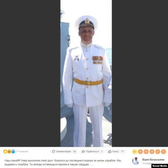 Журналисты "Схем" на "Радио Свобода" идентифицировали погибшего российского моряка из состава экипажа. Он служил в пятой боевой части, отвечавшей за эксплуатационную безопасность корабля.
