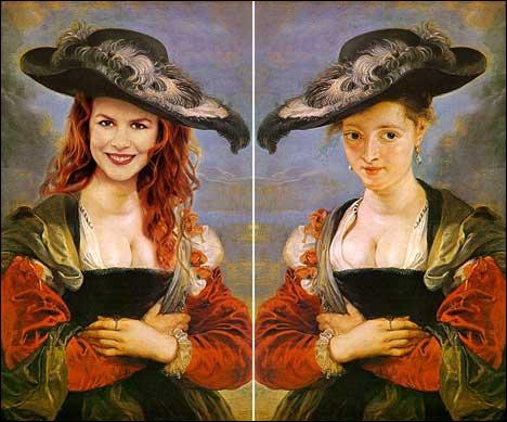 Преображенные картины можно посмотреть на сайте Worth1000. Особенно гармонично смотрится актриса Николь Кидман на полотне Питера Пауля Рубенса "Сюзанна Фурман" ("Соломенная шляпка"). Футболист Дэвид Бекхэм и его супруга Виктория почему-то в темных очках появились обнаженными на классической работе художника Луи Жана Франсуа Лагрене.