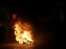Несмотря на такие меры безопасности, протестующие успели пробиться с несколькими резиновыми колесами. Сожгли их на лестнице.