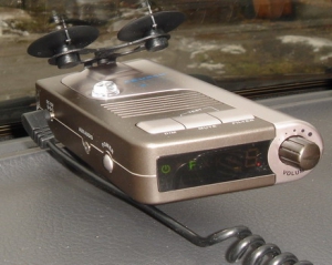 Радар-детектор предназначен для фиксации радиоволн, которые излучают радары инспекторов ГАИ. Как только устройство обнаруживает сигнал радара, то сразу начинает пищать. Радар-детектор крепится присосками к лобовому стеклу автомобиля. Питается от сети машины.