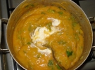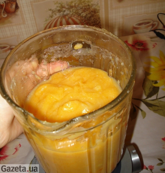 Готовое пюре следует изложить снова в кастрюлю. Добавить 1 ст. ложку потертого имбиря, 2-3 ложки сметаны и мускатного ореха.
