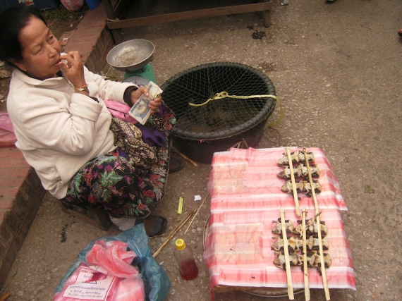 На улице продают вкусные багеты и кофе, живых и жареных лягушек, шмелей на палочках. Бывают животные, похожие на крыс. Их продают жареные и живыми утром на базаре. Иногда их выкладывают из корзины и толкают, чтобы показать, что "крысы" живы.