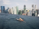 Главный бассейн, расположенный под открытым небом, не имеет видимых бортиков, из за чего создается впечатление, что кромка воды обрывается на высоте (так называемый infinity-pool). Бассейн тянется на 150 метров и является крупнейшим бассейном, построенным на таком уровне, пишет www.etoday.ru.