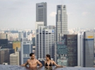 В сингапурском отеле Marina Bay Sands на трех башнях высотой в 200 метров (55 этажей) располагается огромная терраса в виде гондолы с бассейнами и зелеными садами общей площадью 12,4 тыс. кв. метров.