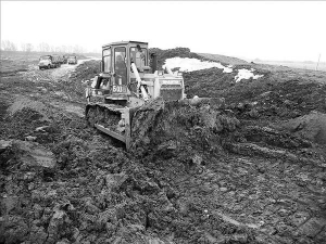 Ноги грузнут в болоте. Вся территория стройплощадки торфяная.