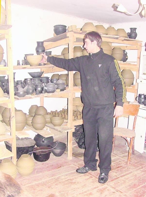 - С детства помогаю старшим гончарам, - Иван чистит устройство. - Помню, как они на фиру накладывали горшки и несколько дней продавали по селам. Кое-что обменивали на продукты. Я учился в Олеском училище на водителя. Работал в Белом Камне на бумажном комбинате - там задерживали зарплату. Поехал в Киев на стройку. А пять лет назад принялся за ремесло. Друзья круг подарили. Однажды с напарником на двух 10 тысяч заработали. Нарадоваться не могли. А так в месяц имею до 2 тысяч. Оформился частным предпринимателем, 600 гривен из заработка отдаю на налоги.