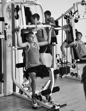 Осматривать комплекс за гостями идут крестьяне. По очереди заходят в залы греко-римской борьбы, тренажерный, аэробики, тихих игр. Дольше всего министр останавливается в галерее над 25-метровым бассейном с четырьмя дорожками. Сверху хорошо видно, как в воде плескаются до 30 школьников. Возле них стоят медсестра и тренер.