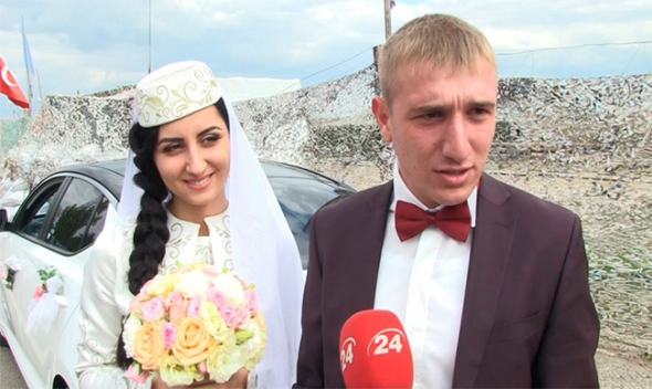Крымские татары Аникхе и Вильдан Бекировы поженились 24 сентября. Свадебный кортеж молодоженов встретили участники акции, которая проводилась по поводу годовщины блокады Крыма в Чонгаре, неподалеку админграницы, пишет "Постфактум".