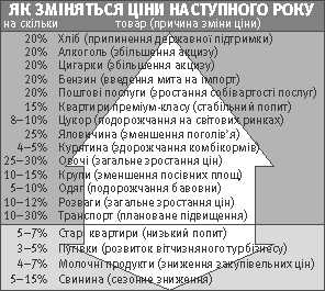 Из-за увеличения акциза на 20% подорожают спиртные напитки и табак. Цена буханки хлеба приблизится к 4 грн. Батон подорожает на 15 коп. Так как зерно возрастает в цене, объясняют в объединении "Укрхлебпром".