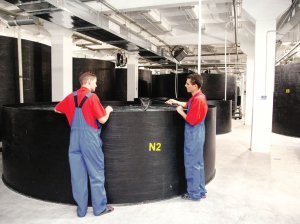 Она начала работать два года тому назад. Находится в помещении старой меховой фабрики. В бизнес вложили почти 2,5 млн евро. Ферму обслуживают 35 работников.