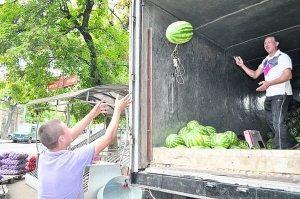 - Магазины за два года отбили у нас треть клиентов. Они устанавливают меньшую цену, чем себестоимость арбузов, - рассказывает Владислав Ткаченко, 48 лет. С женой продают арбузы по 2 грн/кг на рынке близ столичной ул. Чернобыльской. Пятый год подряд ездит за ними в Херсон. - В этом году в июле брал арбузы на оптовом рынке "Капани" по 60 копеек за кило. 550 гривен отдал рабочим за загрузку тонны. Доставка 13 тонн арбузов на фуре обошлась в 6 тысяч. Если прибавить сюда еще аренду места на базаре, то себестоимость килограмма - 1,2 гривны, остальные 80 копеек - мой заработок. Это приблизительно 6-8 гривен на арбузе.