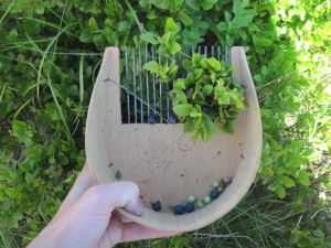 — Если хороший участок, можно и 30 насобирать. Сезон — от Петра до Спаса. Собираем грабачкой, — мужчина показывает металлический совок с деревянной ручкой. Вместо дна гребень с зубцами. — Еще деревянные есть, но в дождь становятся тяжелые. В селе есть мужчина, который делает железные. За штуку просит 100-110 гривен.