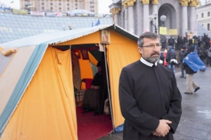 Вчера в Евпатории на траурном мероприятии, посвященном памяти погибших 18-20 февраля на Майдане в Киеве, неизвестные, напали на священника УПЦ КП - отца Ярослава Гонтара.