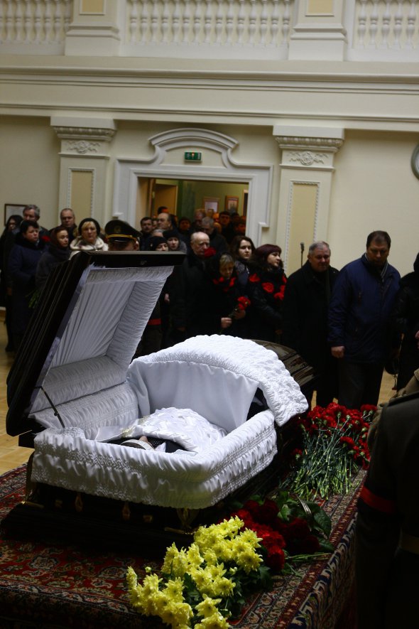 На прощание собралось около 1000 человек. Было много военных и детей. Большинство держали в руках красные гвоздики.