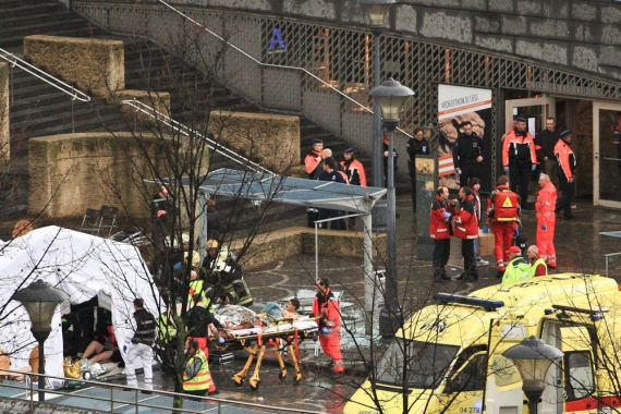 В результате происшедшего пострадали, по последним данным, 64 человека, многие из которых госпитализированы с осколочными ранениями. Пострадавшие были доставлены в шесть больниц, почти половина из которых, 28 человек, оказались в одной из них. Из этих 28 большинству от 17 до 20 лет.