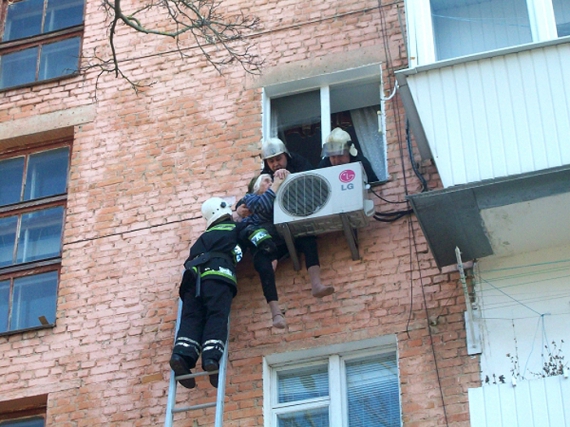 "Сигнал о происшествии поступил около 9.10 утра. Наши ребята сразу выехали на помощь и скоро прибыли на место. К счастью, ехать до дома было недалеко", - рассказывает Виктор Козак из областного управления Госслужбы по чрезвычайным ситуациям. - "Действовали оперативно, потому что никто не знал, сколько еще времени пенсионерка сможет удержаться на кондиционере".