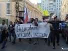 По словам лидера "России Молодой", акция была несанкционированной, три ее участника задержаны и доставлены в ОВД "Тверское".