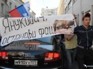 Молодые люди принесли с собой большой черный банер с надписью "Янукович, останови фашизм!", фотографии "зверств" Украинской повстанческой армии (УПА) на территории Польши и Украины во время Второй мировой войны и недавних событий во Львове 9 мая, добавил он.