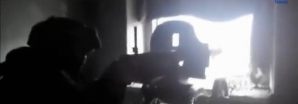 На кадрах зафиксирован белорус, коорый с лозунгом "Жыве Беларусь!" гатит из пулемета "Максим" по террористам.