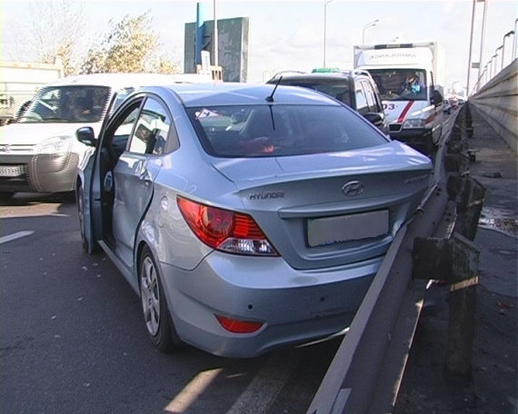 Из-за женщины за рулем на столичном мосту разбились несколько машин