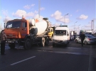 В Киеве произошло автопроисшествие с участием трех машин. На Южном мосту столкнулись автомобили "КамАЗ", "Хюндай" и "Сузуки".