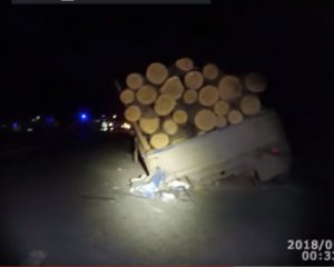 Чиновник на служебном авто врезался в лесовоз. Фото - скрин с видео