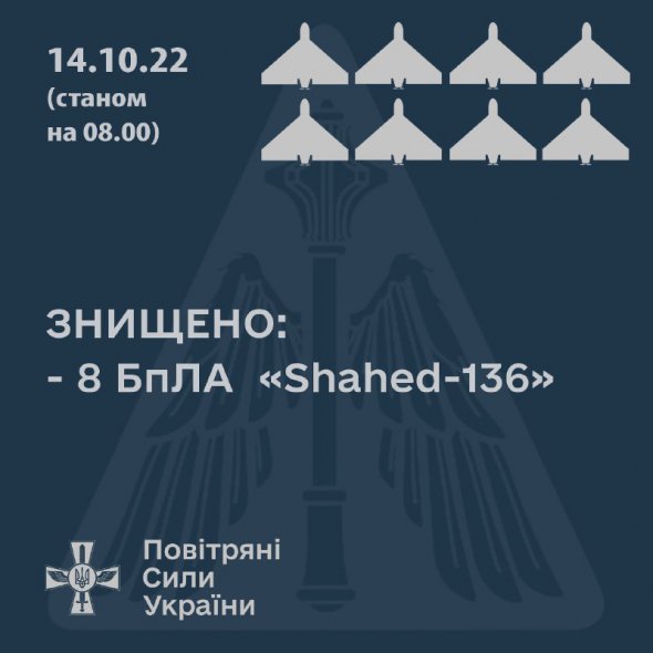14 октября украинские военные уничтожили восемь дронов-камикадзе Shahed-136 иранского производства.
