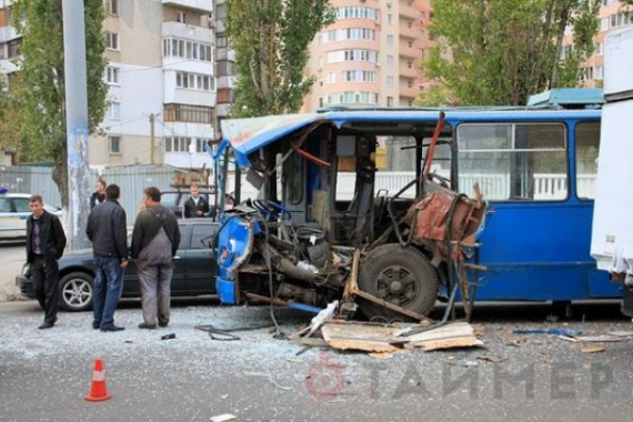 По словам очевидцев, авария произошла примерно в 09:00. Водитель грузового автомобиля "Mercedes" в надежде обогнать стоящий впереди транспорт выехал на полосу встречного движения и буквально снёс полкабины троллейбусу, следующему по 11-му маршруту. После этого грузовик откинуло на легковой автомобиль "Nissan Note".