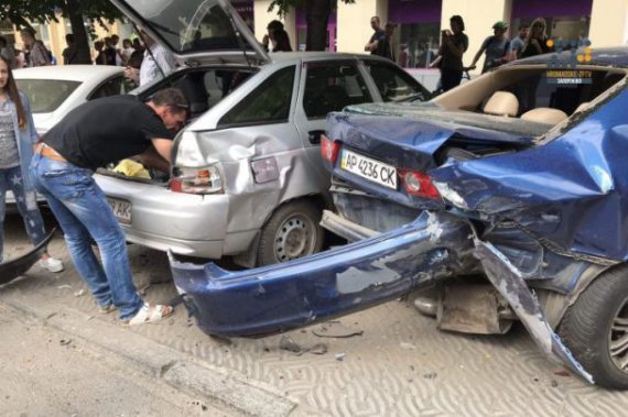 В центре Запорожья на проспекте Сталеваров среди дня произошло масштабное ДТП с участием десятка авто и пассажирского автобуса.