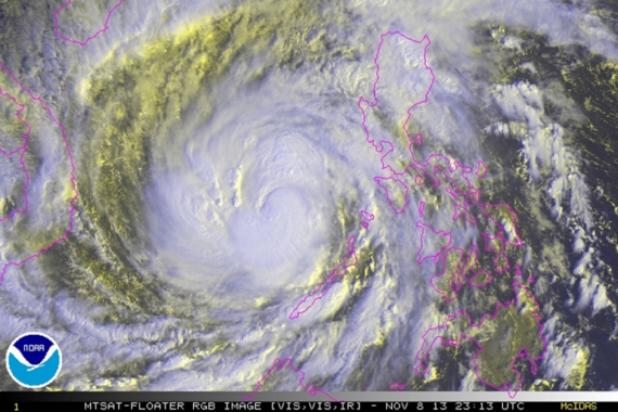 В связи с приближением тайфуна "Хайян" на Филиппинах были эвакуированы более 1 млн человек, а еще свыше 14 млн в 37 провинциях получили предупреждение о возможной эвакуации. Скорость ветра в эпицентре урагана составляет 275 км/час, а порывы превышают 310 км/час. Высота морских волн в зоне циклона превышает 6 метров. Основной удар стихии пришелся по центральной части Филиппин - островам Самар и Лейте.