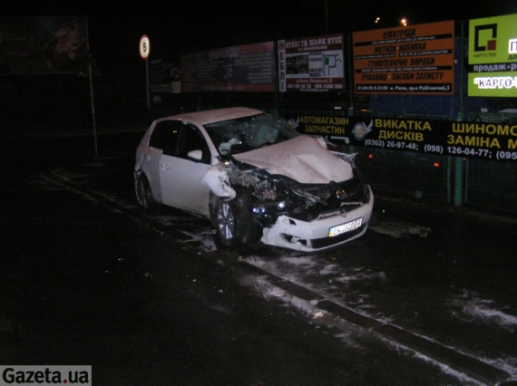 В субботу, 31 января, в 5 утра на железнодорожном переезде по ул. Пересопницкой в Ровно автомобиль "Volkswagen Golf" столкнулся с пассажирским поездом Киев-Ковель.