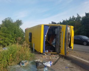 По информации полиции, грузовик врезался в заднюю часть маршрутного автобуса "Богдан", и тот в результате столкновения перевернулся.