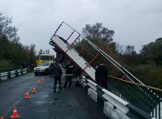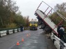 В Полтавской области возле села Шиловка Зеньковского района грузовик вторые сутки свисает с моста.
