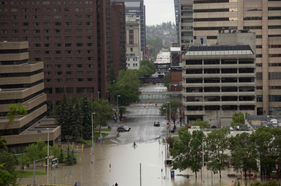 Водой заливает Калгари — нефтяную столицу Канады. Две протекающие через город реки Боу и Элбоу подтопили центр: пострадали тысячи зданий, в том числе ледовая арена клуба НХЛ Calgary Flames. Во всем городе закрыты школы и колледжи, в пострадавших районах отключили электричество. Вода угрожает зоопарку. Власти решили в случае опасности перевезти зверей в камеры для подсудимых в здании суда.