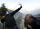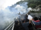 По данным испанской полиции, шахтеры перекрыли горящими автопокрышками и камнями автострады AS-117, AS-17 и M-5.